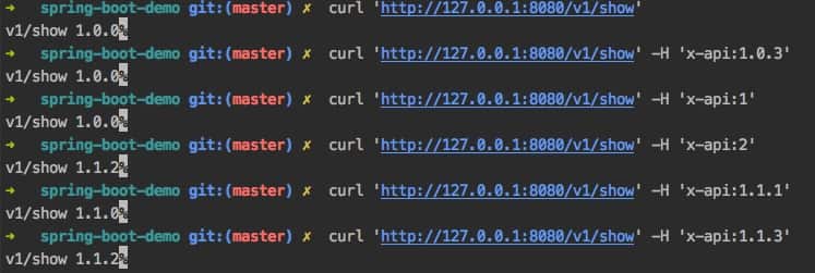 @Api("1.1.2") @GetMapping(path = "show") public String show2() { return "v1/show 1.1.2"; }