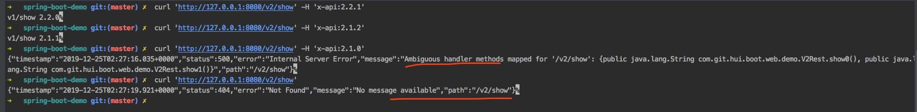@Api("2.1.1") @GetMapping(path = "show") public String show2() { return "v2/show2 2.1.1"; }