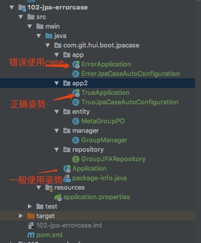 | @Configuration @EnableJpaRepositories("com.git.hui.boot.jpacase") @EntityScan("com.git.hui.boot.jpacase.entity") public class TrueJpaCaseAutoConfiguration { }