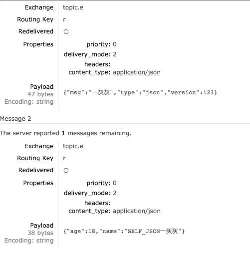 下面是通过Jackson序列化消息后的内容,与我们自定义的有一些不同,多了headers和content_encoding