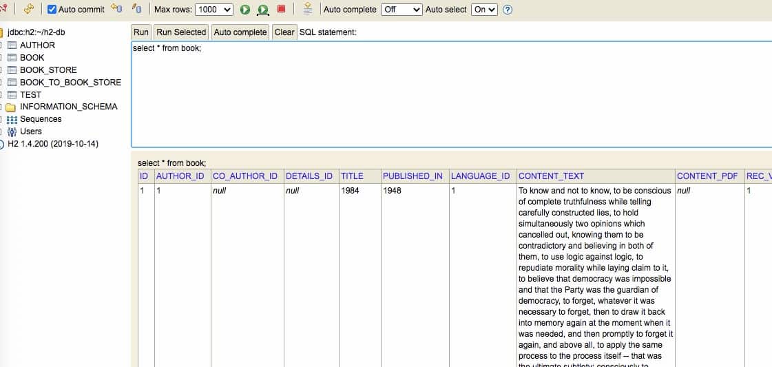 导入成功之后,再到h2控制台,就可以查看对应的数据