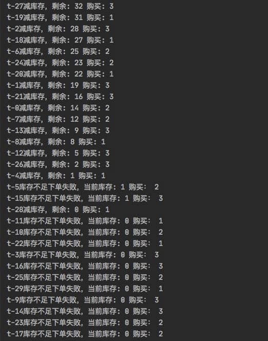我们写一个简单的并发扣库存的测试case,主要的逻辑就是当前的库存小于购买数时,下单失败