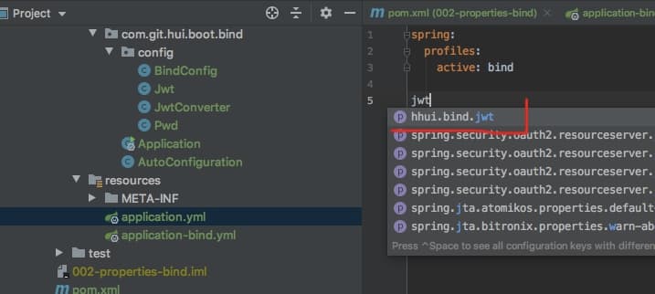 请注意上面的注解中,prefix = hhui.bind,简单来讲就是会读取配置文件中,前缀为 hhui.bind 的属性,然后依次赋值到这个类中