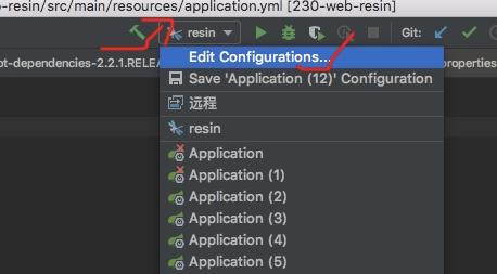 请注意,这时的启动,不是在main方法上邮件运行,而是借助前面配置的resin,来运行