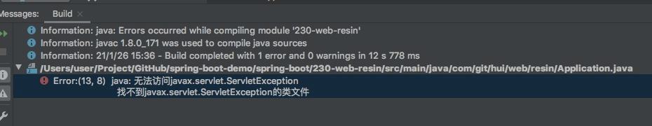 启动的第一个异常,Error:(13, 8) java: 无法访问javax.servlet.ServletException 找不到javax.servlet.ServletException的类文件