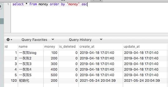 一灰灰,对应sql如下select * from money where name = '一灰灰'