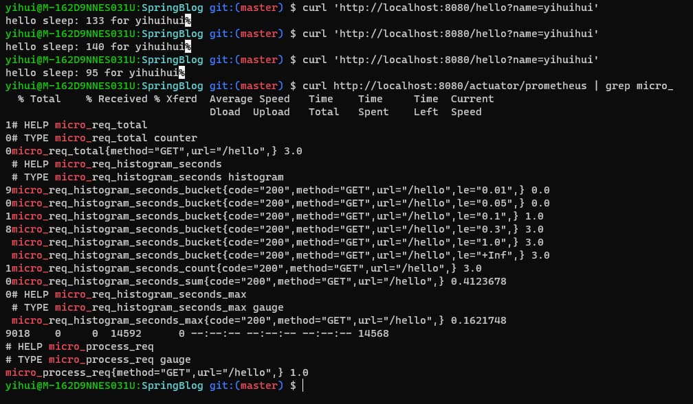 看过前文的小伙伴可能会知道,之前采用的simpleclient包定义的几个metric来实现的,实际上有更简单方便的姿势,那就是直接借助MeterRegistry来创建Metric来实现数据采集即可