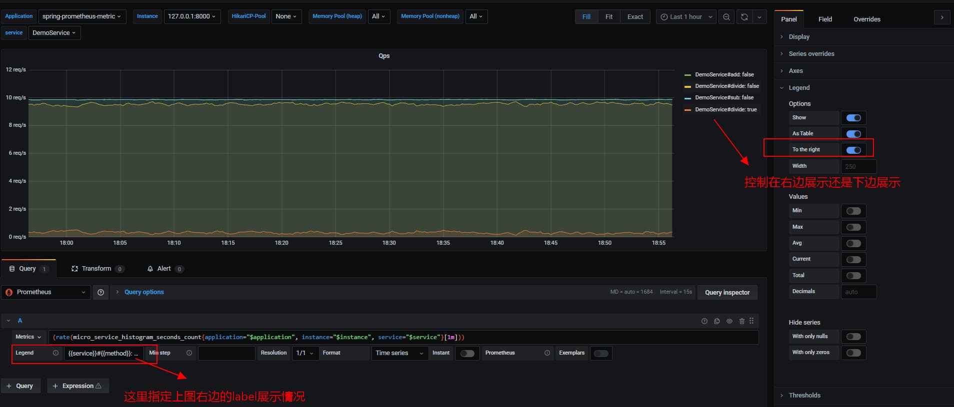 micro_service_histogram_seconds_count,而application与instance则选取的是Prometheus-Spring组件上报的spring应用基础信息中的metric