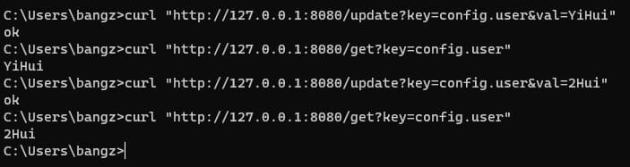 | @Slf4j @RestController public class IndexController { @GetMapping(path = "update") public String updateCache(String key, String val) { SelfConfigContext.getInstance().updateConfig(key, val); return "ok"; }