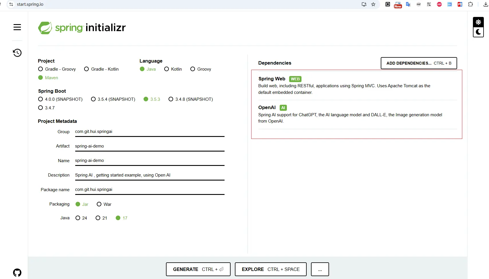 下面介绍一下,如何快速借助官方的启动方式进行快速搭建一个用于体验SpringAI的示例工程