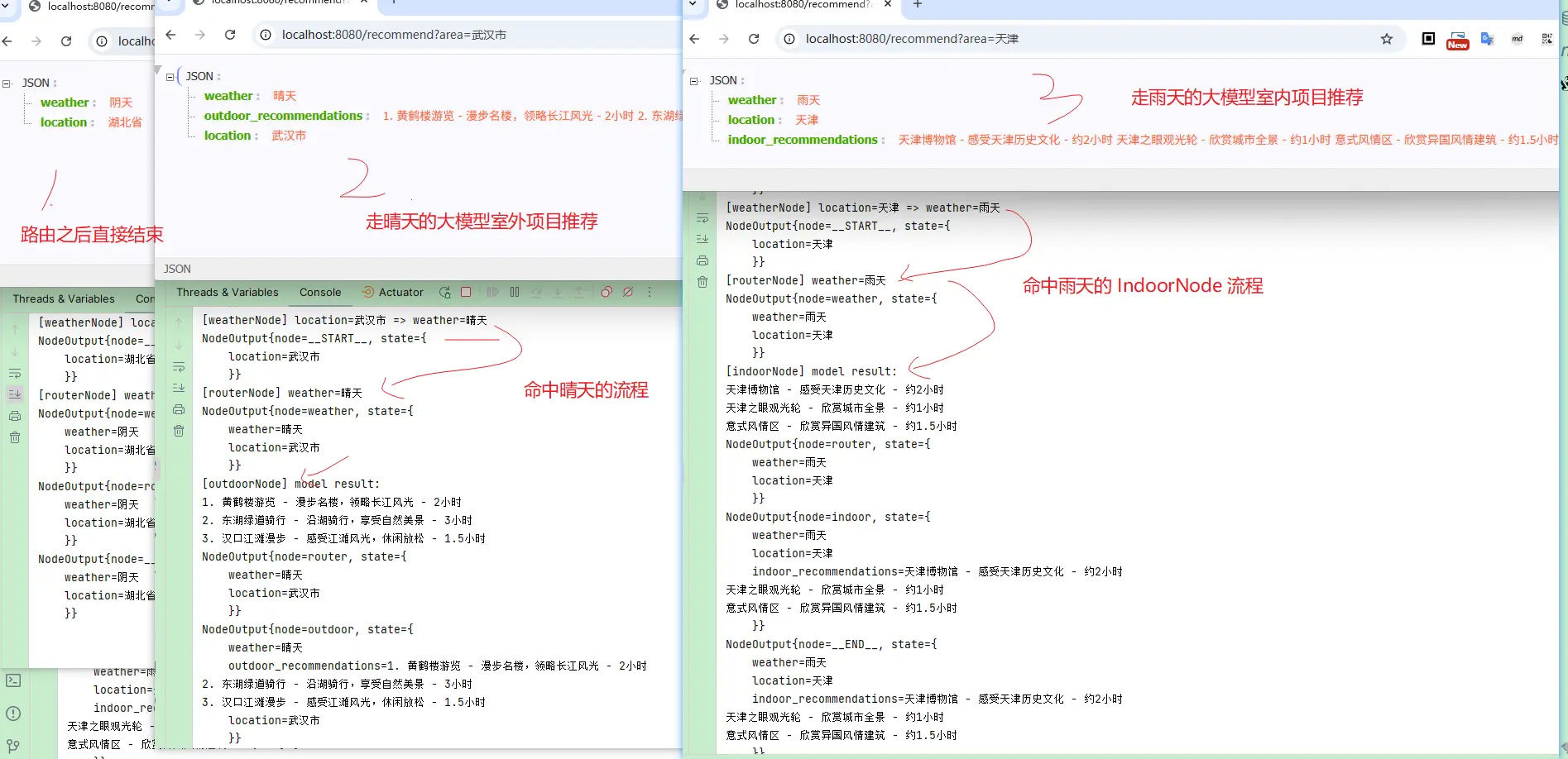 - 当天气为雨天时,路由到 indoor,推荐一些室内的旅游项目